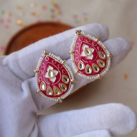 Pretty Magenta Meena & Stones Work Studs