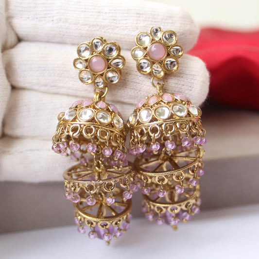 Lavender Multi-Layered Jhumki Earrings