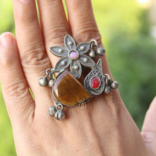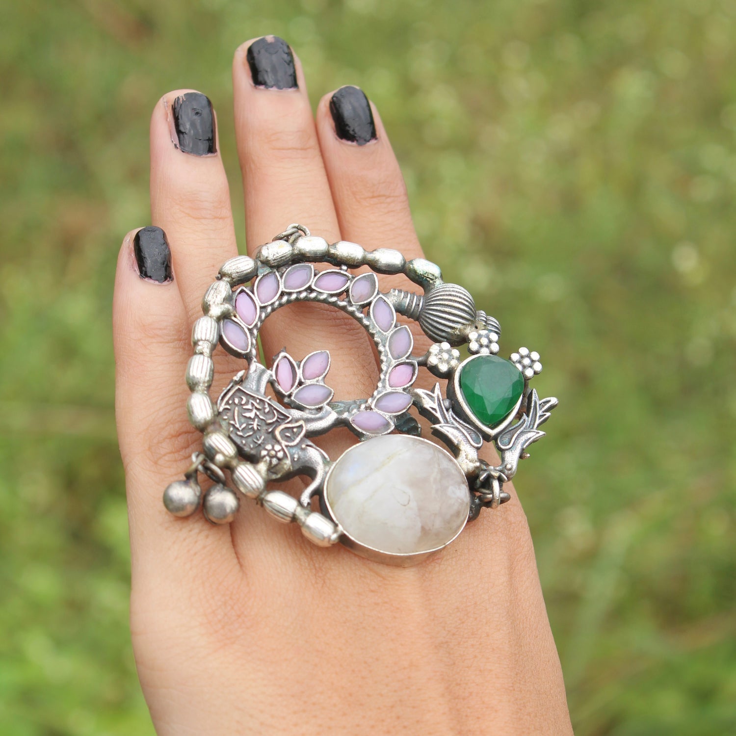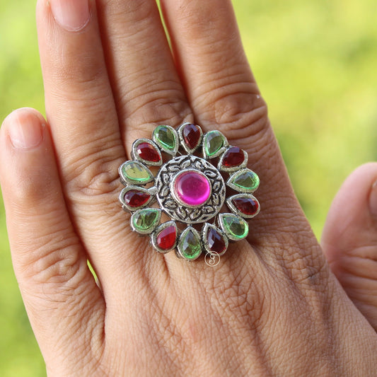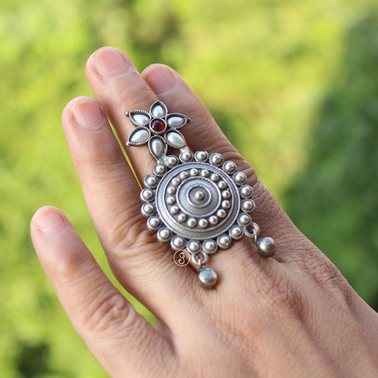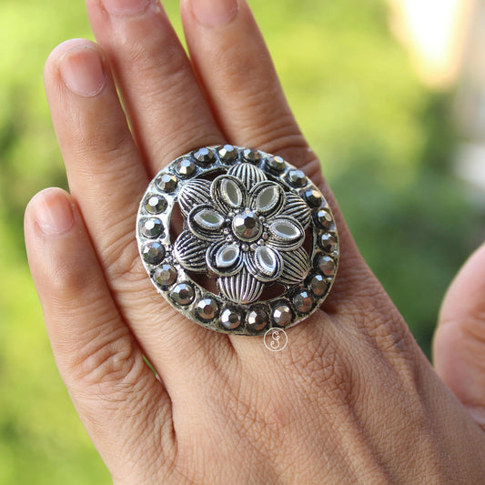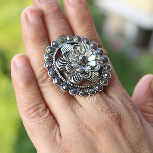 Beautiful Oxidised Silver Antique Adjustable Ring