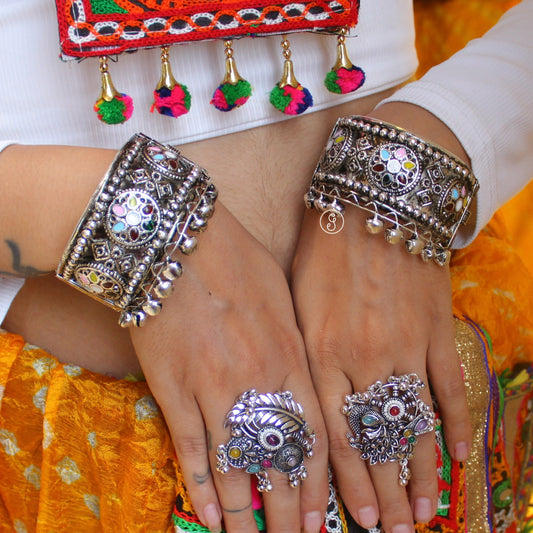 Oxidised Silver Adjustable Ring (Set of 2) Random Design