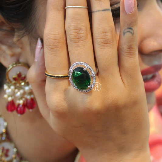 Emerald Green Diamond Studded Adjustable Ring