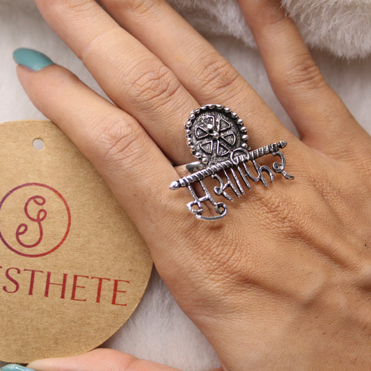 Trishul Design Oxidised Silver Adjustable Ring
