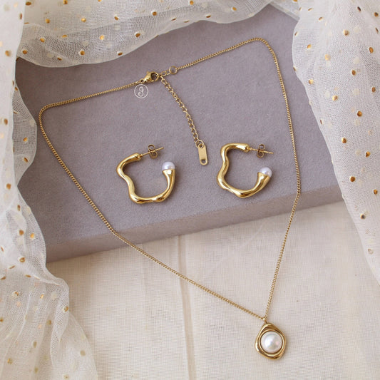 Elegant Multi Beads Gold-Alike Chain & Earrings