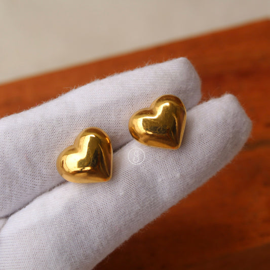 Golden Anti-Tarnish Heart Shaped Studs Earrings
