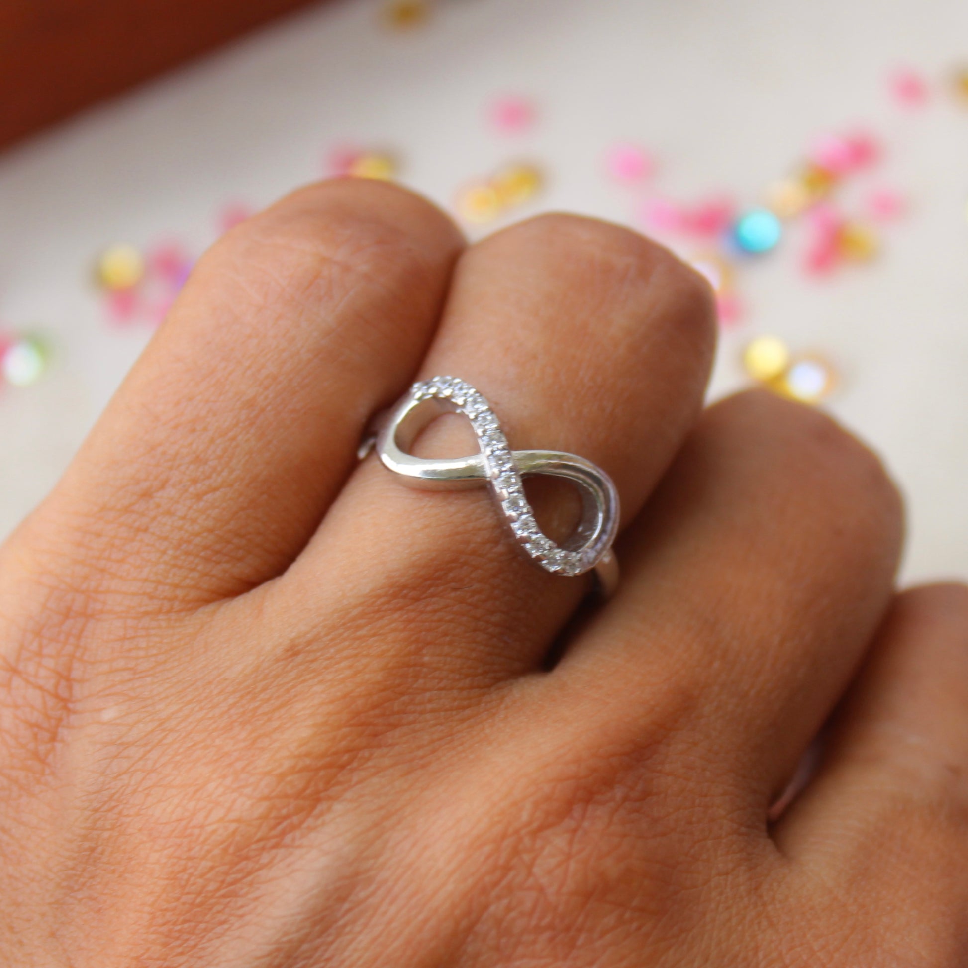 This unique and elegant 92.5 pure silver ring features a stunning infinity design, symbolizing an everlasting bond. Adorned with CZ diamonds, it’s perfect for everyday wear and makes a thoughtful gift for someone you love. Ideal for occasions like birthdays, anniversaries, Valentine’s Day, Friendship’s Day, Diwali, Karwa Chauth, Teej, Raksha Bandhan, or any special celebration. Comes with a certificate of purity and ready-to-gift packaging.