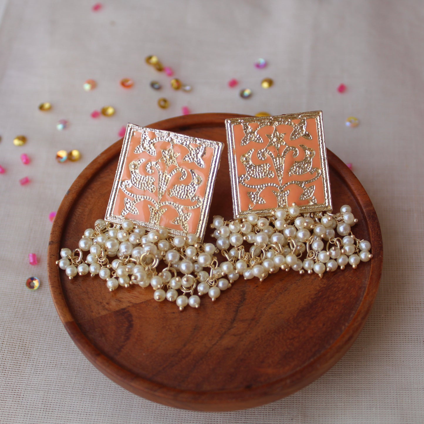 Classic Square Shaped Peach Earrings